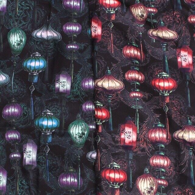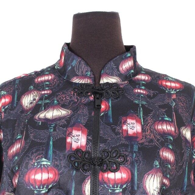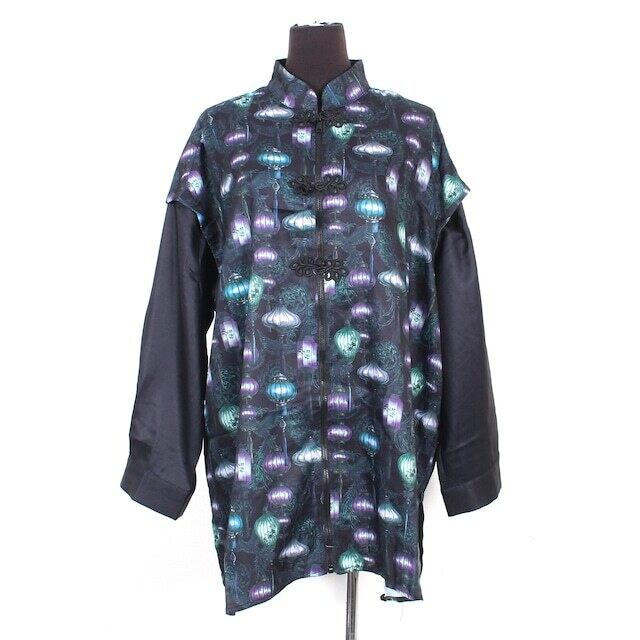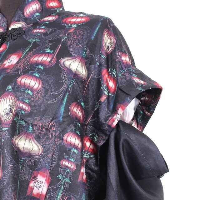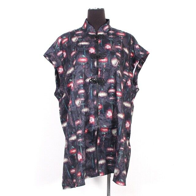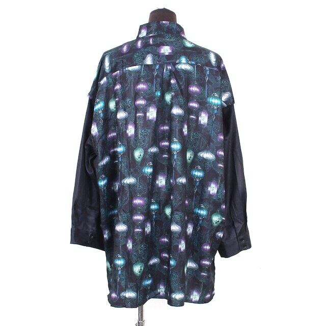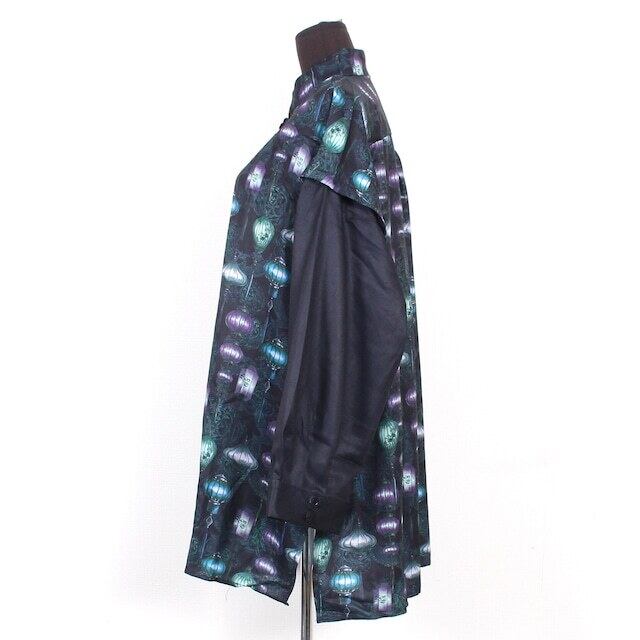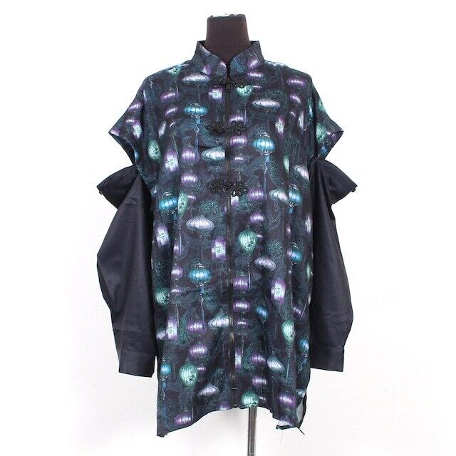 花鳥提灯柄ZIPシャツ†チャイナボタン付き長袖&半袖2WAY 切替ロングシャツ 総柄 メンズ レディース DXMOUVE ロージエイト