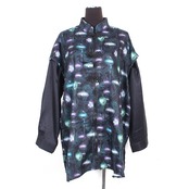 ★「花鳥提灯」総柄プリントZIPロングシャツ。